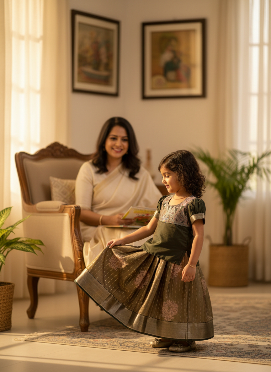 Grey And Green Softsilk Pavadai Chattai