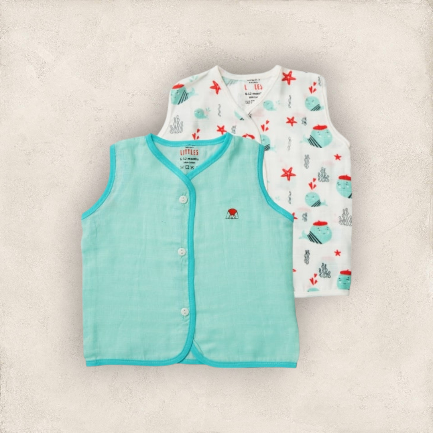 Muslin Jabla Blue Set Sleeveless Set of 2