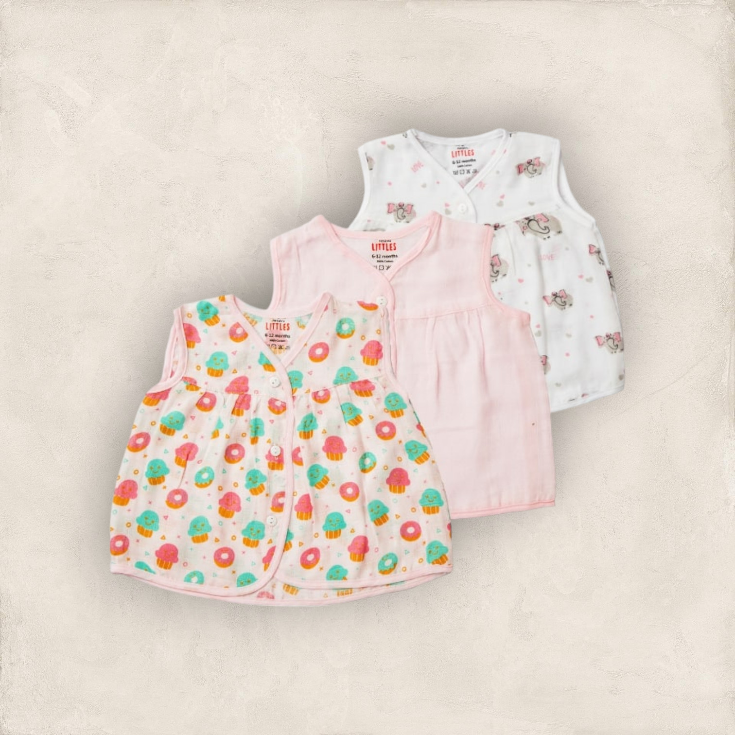 Muslin Jabla Pink Set Yoke Frock-Front Open Set of 3