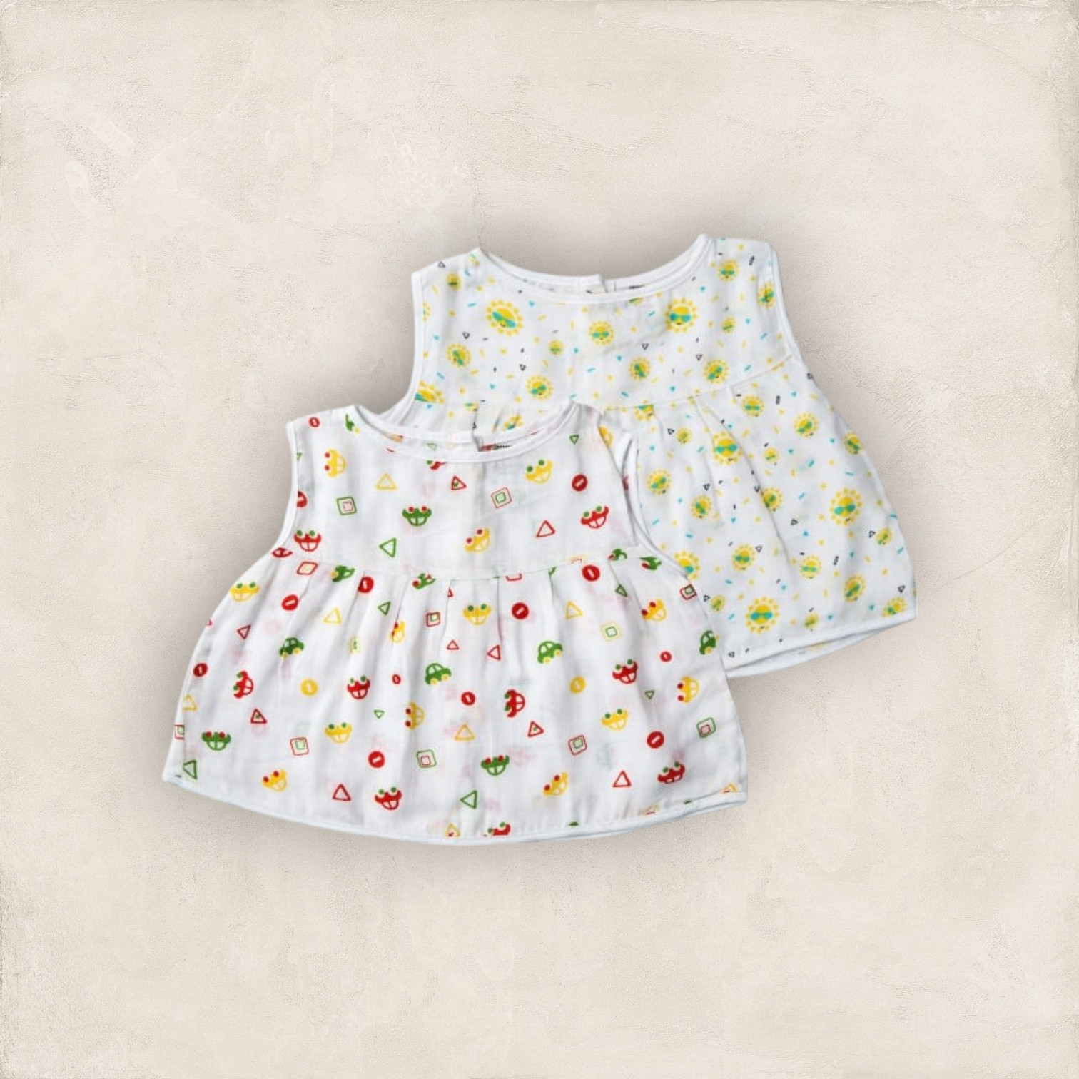 Muslin Jabla White Set Yoke Frock Set Of 2
