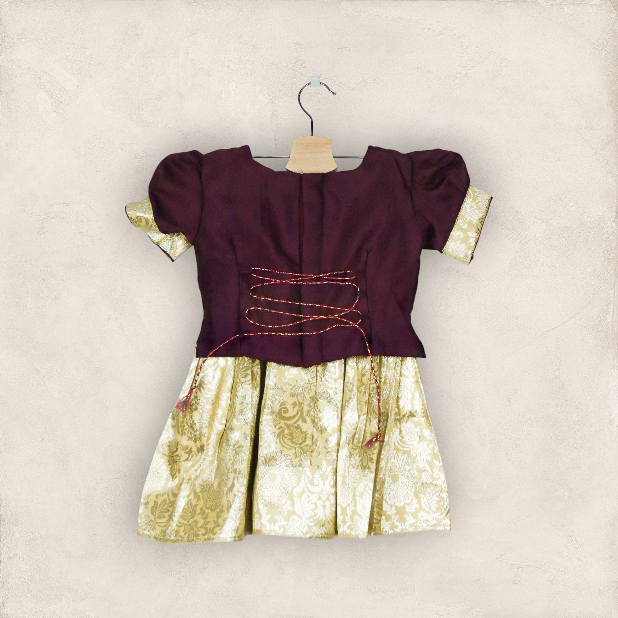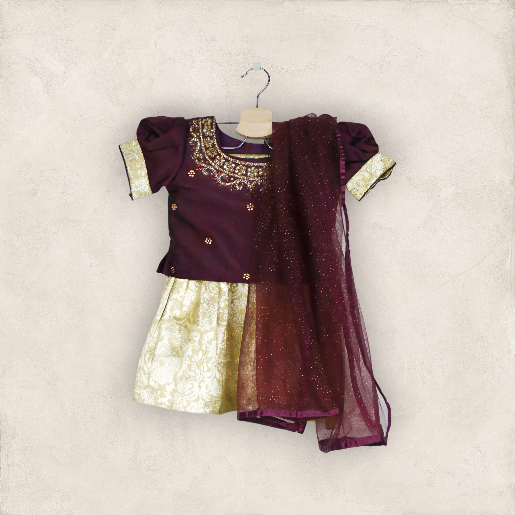Wine And Gold Lehenga Choli Set With Dupatta/2-3 Years